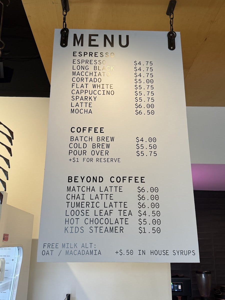 In addition to artisanal brews, guests can indulge in tasty bottled beverages like Harmless Coconut Water and OOSO Sparkling Green Tea. Don't miss the chance to enhance your coffee experience with their Cheeky Espresso Syrup, crafted from seasonal Nicaraguan beans, perfect for creating the ultimate Espresso Martini.